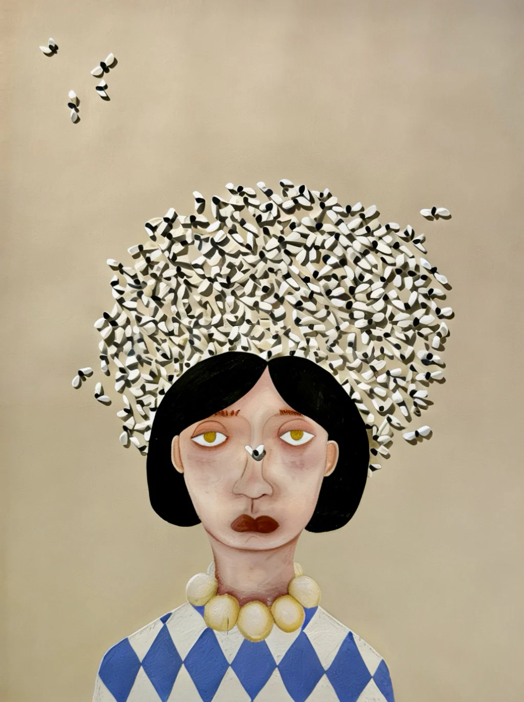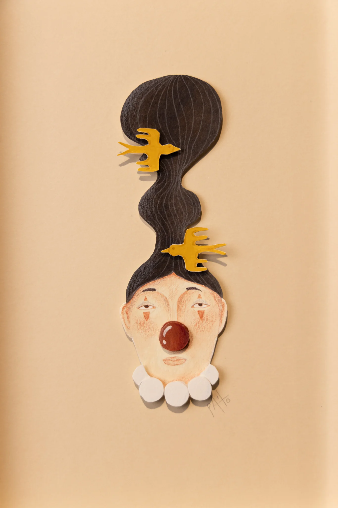 Técnica mixta sobre papel (pastel al óleo recortado y superpuesto, collage y papel recortado aplicado) · 2026